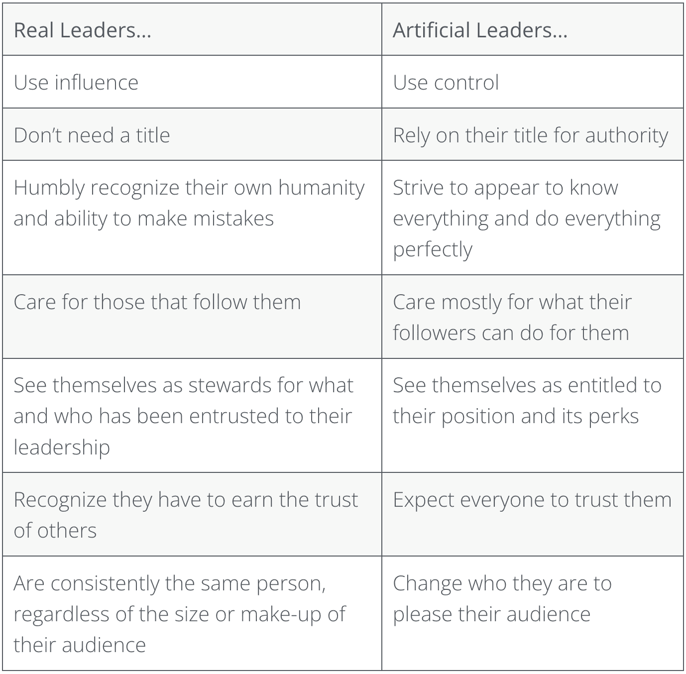 What would you say is the difference between Artificial Leadership and Real Leadership? How about this . . .